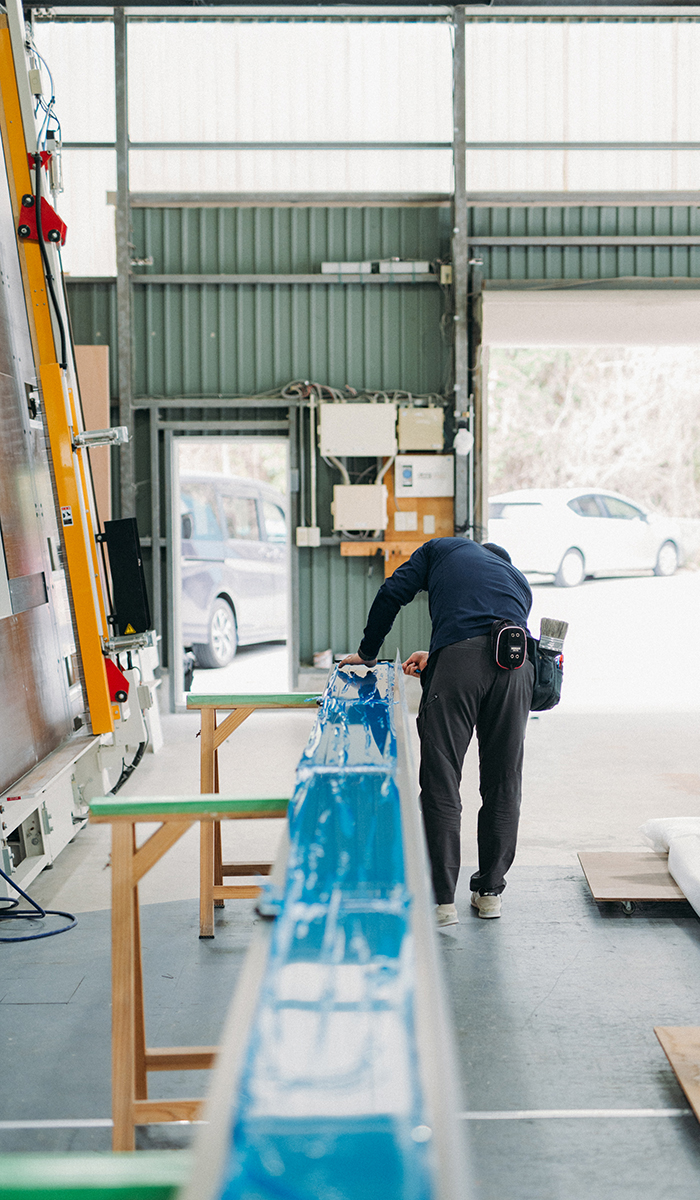 長崎県長崎市に本社を、お隣の西彼杵郡長与町に工場がございます。自社工場で加工して、現場での取り付けまでワンストップで対応いたします。